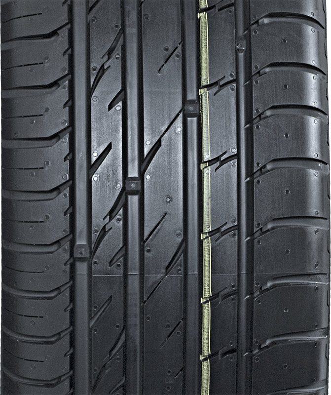 Le scanalature separate, studiate per ridurre l’effetto acquaplaning, sono dette Swoop Grooves, poste all’interno delle scanalature trasversali principali. Questo permette di rimuovere più acqua. Il tipico disegno degli pneumatici Nokian Line, Inside-Outside, favorisce una grande precisione di guida, anche ad elevate velocità e su superfici bagnate. Ovviamente, secondo le nuove normative europee questi Nokian Line sono pneumatici attenti all’ambiente. Presentano degli indicatori visivi di usura.